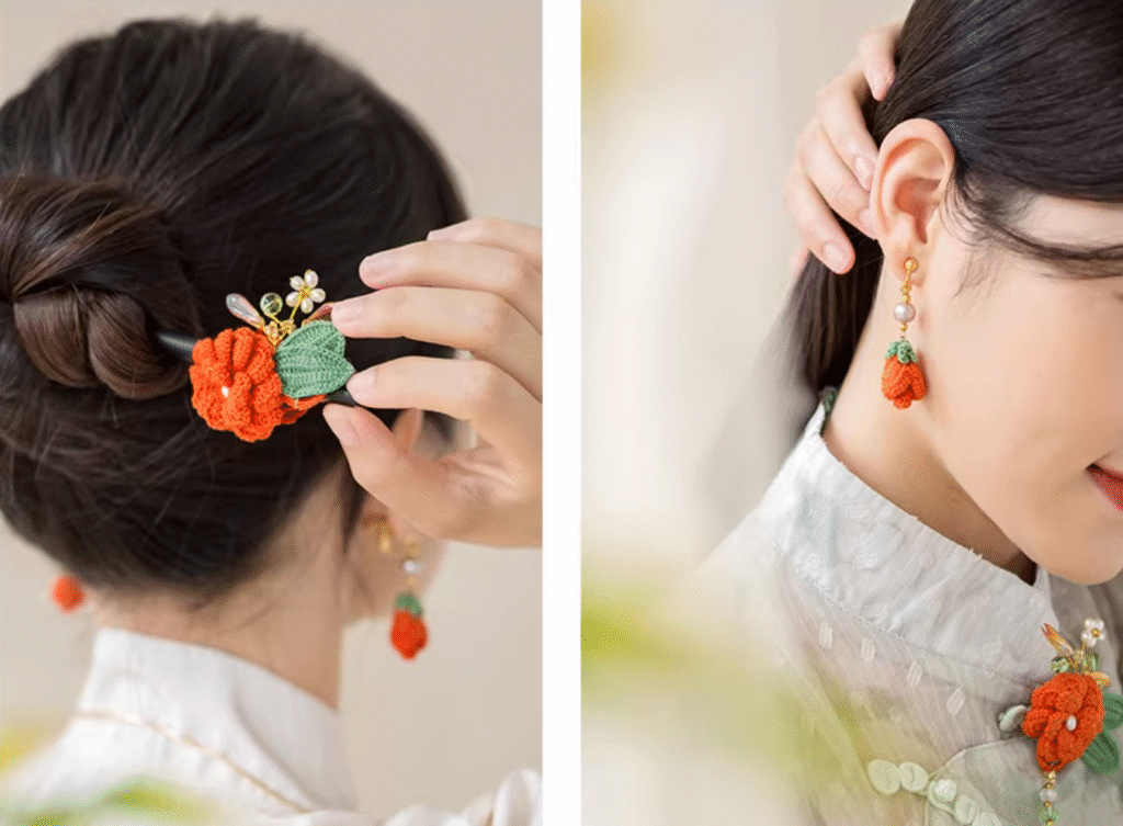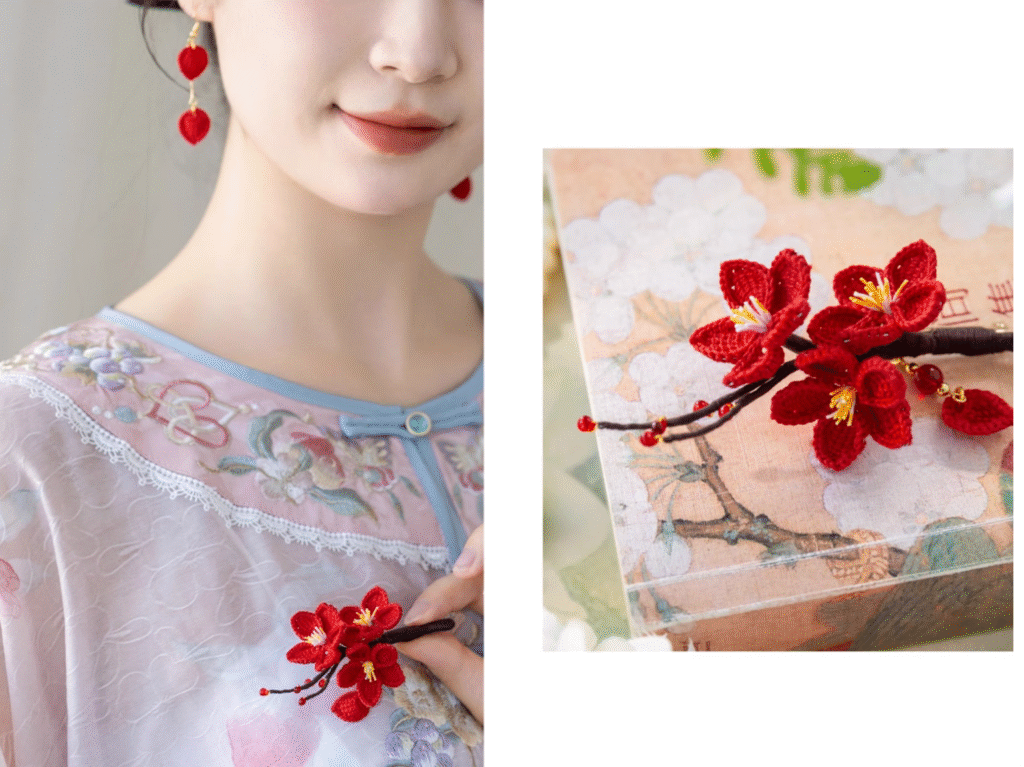 There are 4 types of floral jewelry sets, namely plum blossom, crabapple, osmanthus and magnolia. Each piece embodies profound classical Chinese elements through intricate design.